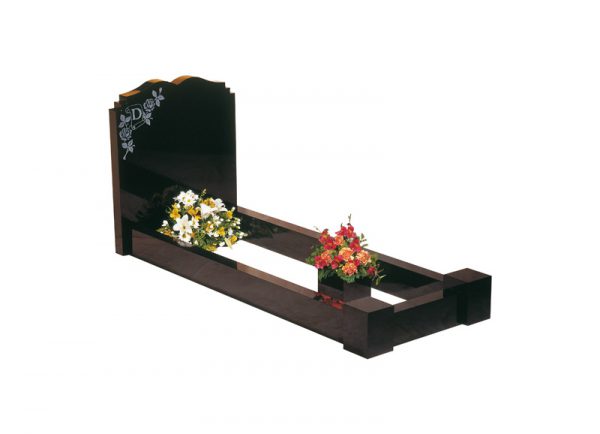This unusual shaped headstone has a dipped centre and double check shoulders.