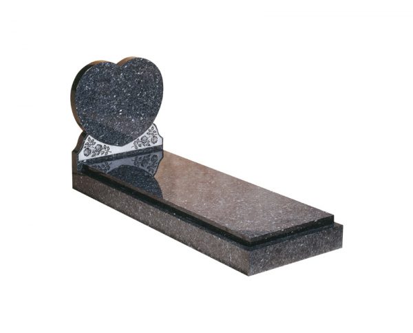 A Blue Pearl heart with sandblasted Rose ornament, a cover slab covers the kerb area.