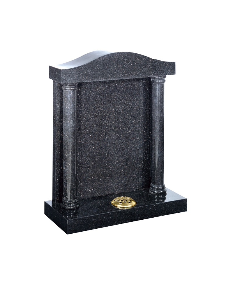 This temple style memorial features fully turned columns and canopy top.