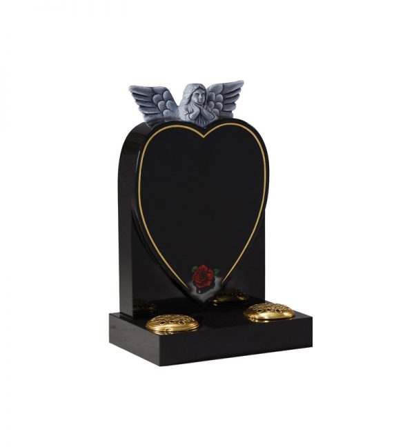 A delicately carved angel looks over this heart. The heart is raised from the background of the headstone, the angel looks down but can also be offered without the angel.