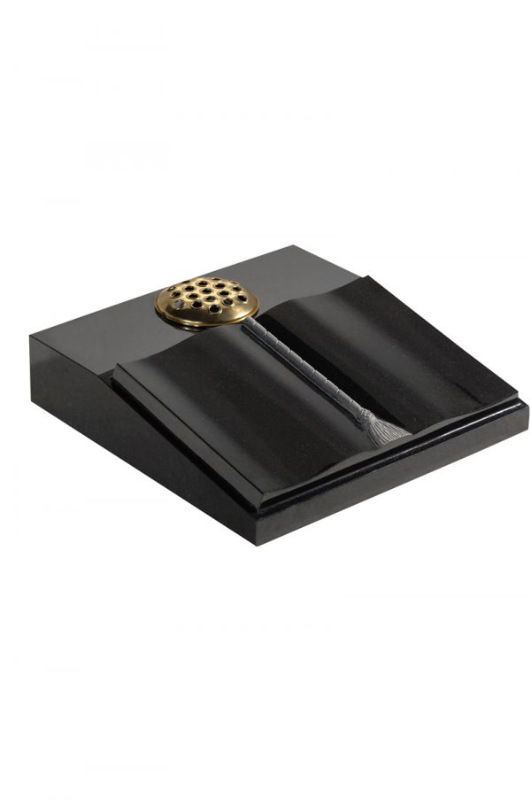 This cremation memorial has a carved cord and tassel, the top flat band is bored for a flower container.